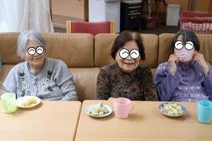 嚥下状態が悪い入居者様にはスイートポテトとジャガイモポタージュを