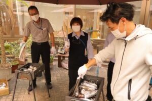 皆様、芋が焼けるのを心待ちにされており何度も中庭で焼いている芋🍠を見にいらしてました😁🍴