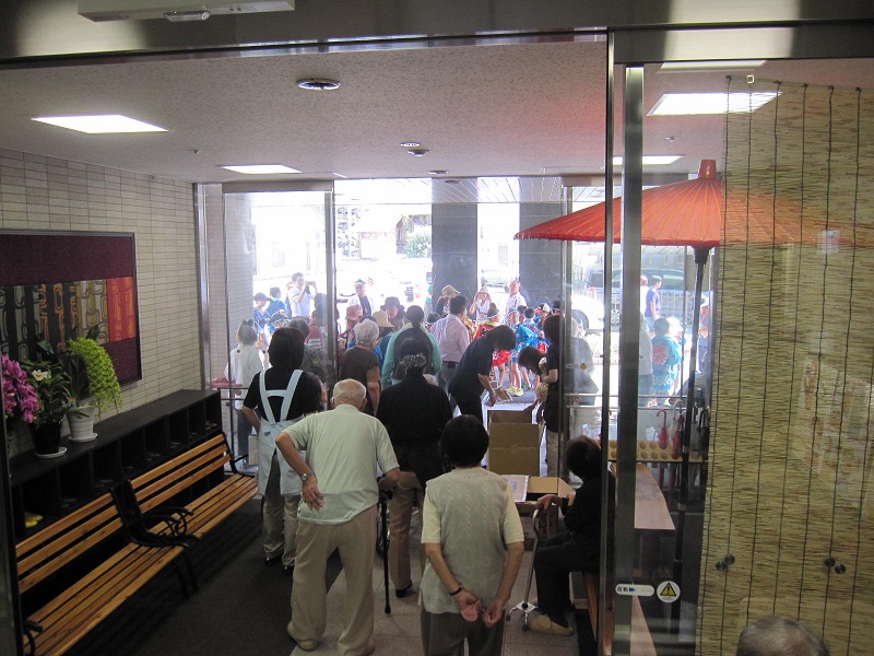 炎天下の中、たくさんの子供たちが元気よくアビタシオン前に到着です!